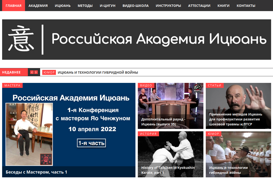 Информация о стиле, мастерах, инструкторах, новости Академии, даты семинаров, видео-школа, статьи, книги, юмор Ицюань и др.