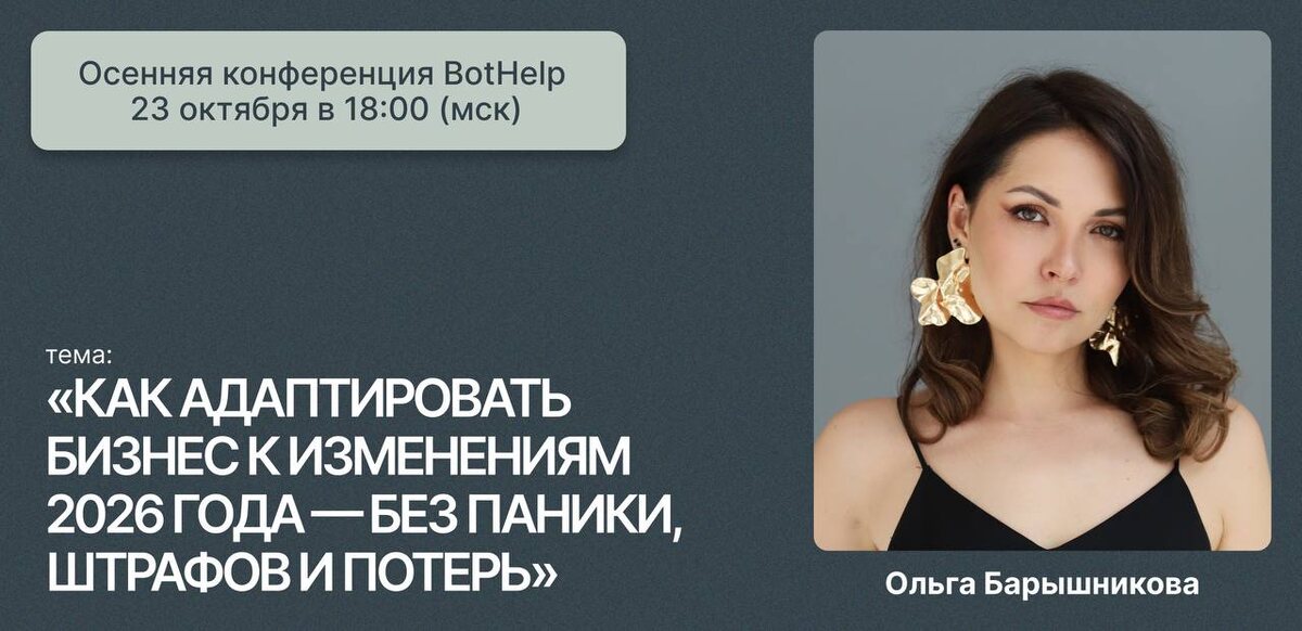 📅 23 октября в 18:00 пройдёт Осенняя конференция BotHelp — прямой эфир для предпринимателей, маркетологов и digital-специалистов.