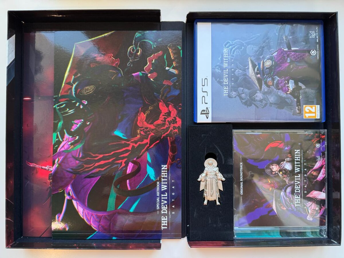 А вот и обещанная распаковочка 🎉 Расскажу, что внутри и свое мнение: ⦁ 2 почтовые карточки большого размера - ламинированные, большие, на плотном картоне. Кадры красивые. По моему мнению немного подкачало разрешение самого изображения - для такого большого размера получилось мыльненько, если присмотерться поближе. ⦁ Артбук в мягкой обложке - 44 страницы с концептами артами персонажей, локаций, оружия и прочих предметов. Вот тут качество печати на высоте - изображения красочные и четкие. Позже покажу развороты отдельно - по 10 страниц в посте. ⦁ Диск с OST - 23 трека с игры. Еще не слушал, но, если честно, не очень разделяю идею с дисками - вставлять-то их уже некуда 😅. Был бы еще промокод на их загрузку, как в Blasphemous, то было бы супер. ⦁ Kim Rip metal pin - металический пин с главным героем. Выглядит классно, но из-за веса ровно висеть сможет разве что на плотном рюкзаке. Застежка супер, с блокиратором. Случайно нигде не отстегнется. ⦁ Диск с игрой для PS5 - диск есть диск