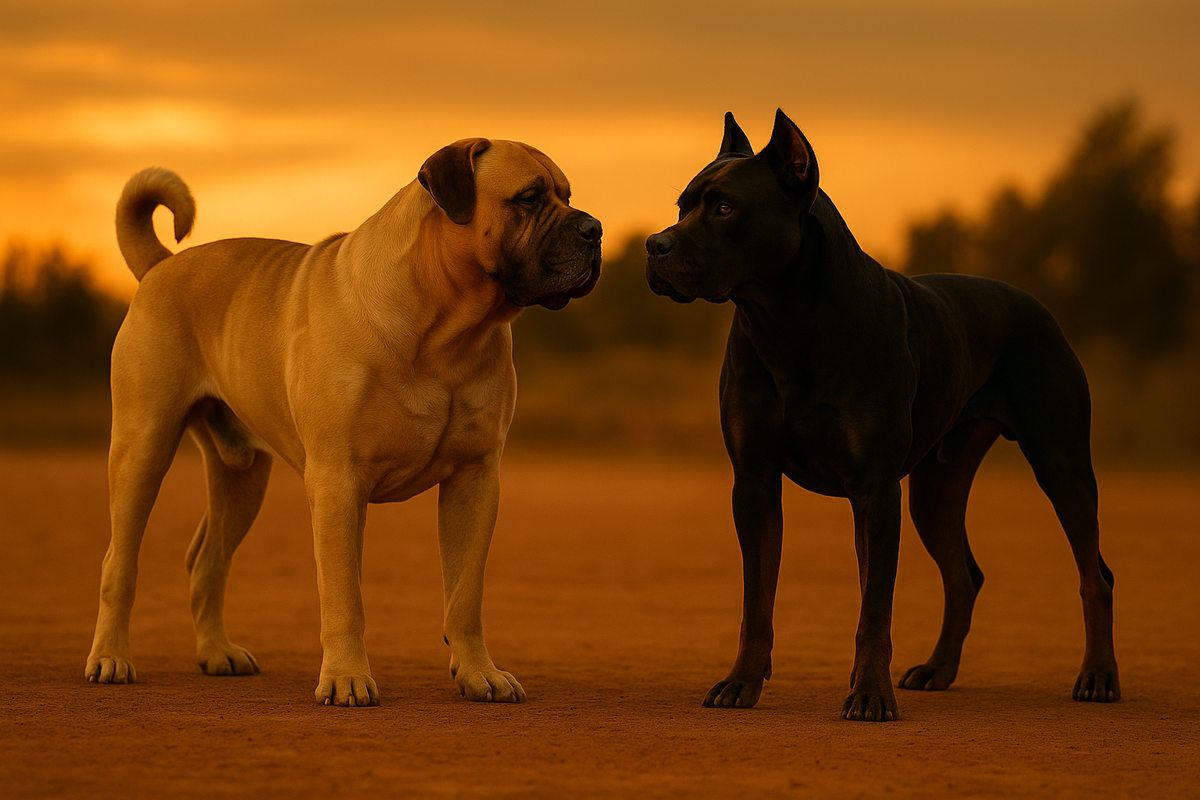Каменная стена против стального гладиатора Когда сталкиваются две бойцовые легенды — Бульмастиф и Кане-корсо — воздух будто сжимается от напряжения.