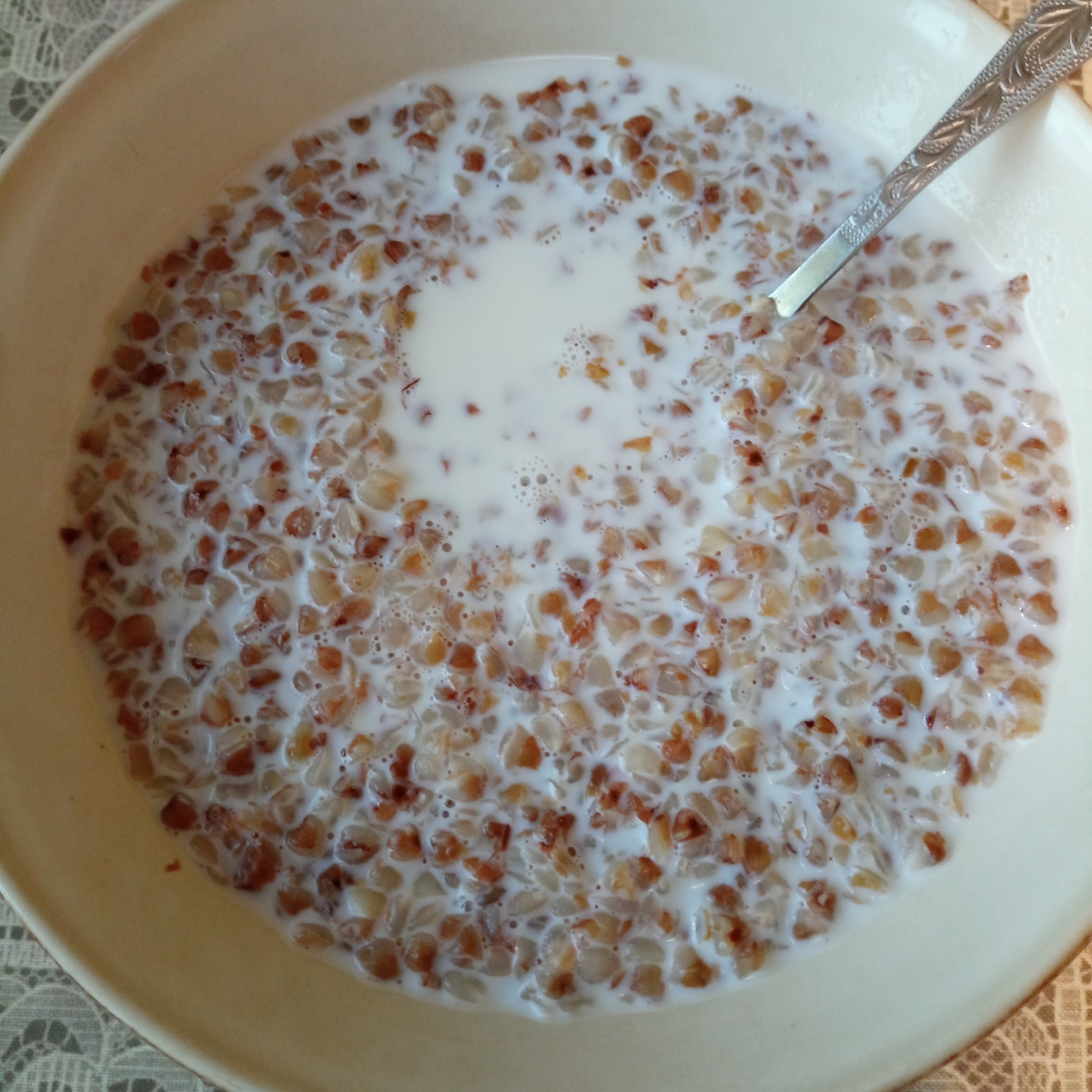 Так вот, моё сегодняшнее утро было вполне бодрым. Выспалась отлично. Приготовила на завтрак гречневую кашу. Ела с молоком.