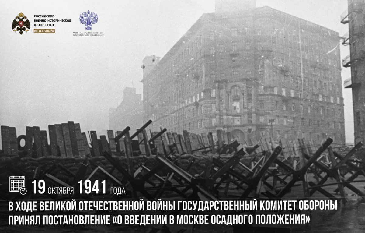 19 октября 1941 года в ходе Великой Отечественной войны Государственный комитет обороны принял постановление «О введении в Москве осадного положения» С 12 часов ночи до 5 часов утра действовал комендантский час, запрещавший любое передвижение по улицам. Местные жители копали окопы и траншеи, улицы перегораживали противотанковыми ежами и баррикадами. В декабре 1941 года советские войска перешли в контрнаступление по всему фронту под Москвой. Через месяц, в январе 1942-го, осадное положение в столице было отменено. #памятныедаты_ИсторияРФ