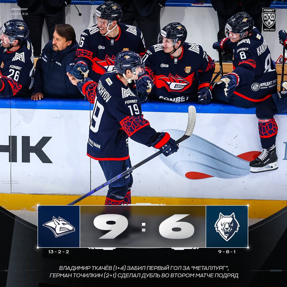 🦊 «Металлург» впервые в истории забросил девять в одном матче и обыграл «Нефтехимик