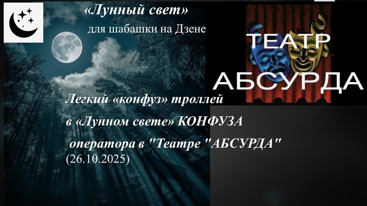 Штатные тролли канала "Лунный свет" для "шабашки" в "Театре "АБСУРДА" под руководством А.И.Попова (23.10.2025). 3 дня назад.