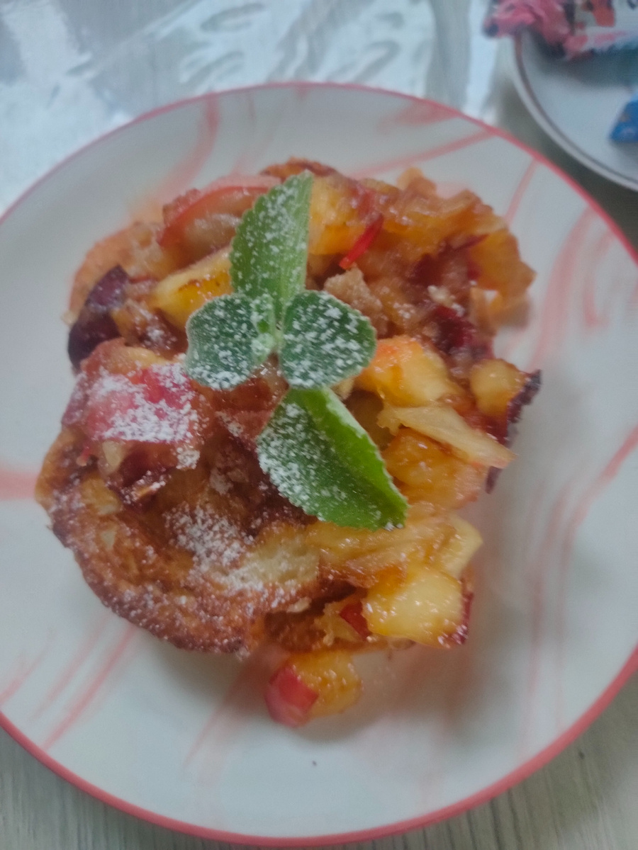 Добрый день, мои подписчики и гости моего канала. Пусть этот день будет хорошим, на предыдущий не похожим. И пусть начнется полоса удачных дней, любви, добра! Я рада вас видеть на своем канале, где я показываю меню на день. Два дня подряд я вставала по будильнику около 7 утра. Едва глаза открывала. Сегодня воскресенье, мне никуда не надо. Проснулась, было начало седьмого. Всегда так. Помню, ребенок, когда ходил в детский сад, утром трудно было разбудить, как выходной спать хочется, а он раным - рано проснулся. Приходилось вставать. Светает уже позже. Полежала до 8 часов. На улице пасмурно. Моросит мелкий дождь. Вообще солнца сегодня за целый день на видела. После полудня дождь прекратился, а ближе к 7 вечером опять небо заплакало. Все планы на день нарушены. Планировала опять поработать в цветнике, пока температура плюсовая, но не сбылись мои планы. Утро. Пора готовить завтрак. Давненько не было на моем столе гренок в яйце. Их и приготовила, а к ним яблоки в карамели. Завтрак: сладкие