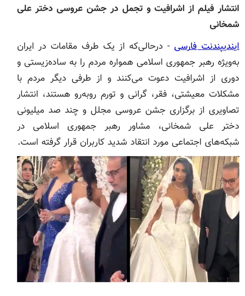 🇮🇷 Оппозиционные иранские ресурсы, а также ряд израильских и азербайджанских СМИ усиленно разгоняют утекшие в сеть кадры со свадьбы дочери Али Шамхани — экс-секретаря Высшего совета национальной безопасности Ирана и советника верховного лидера. Дескать, церемония не соответствует исламским нормам (невеста без хиджаба и в откровенном наряде). И вообще, всё слишком дорого и помпезно. Посмотрел это «скандальное» видео. Во-первых, хочу сказать, что пара очень красивая. Желаю им счастья и детей побольше. Во-вторых, слившие эти кадры - просто свиньи. Хорошо бы их найти и наказать. По поводу роскоши. Учитывая статус г-на Шамхани, свадьба вышла очень даже скромная. Я видел в Иране гораздо более роскошные праздники, устраиваемые состоятельными бизнесменами, артистами и даже раскрученными блогерами. Ну а что касается внешнего вида невесты. Как я понял, на видео женская часть свадьбы, и по традиции, отец и жених присутствуют на ней. Совсем недолго. Затем уходят.