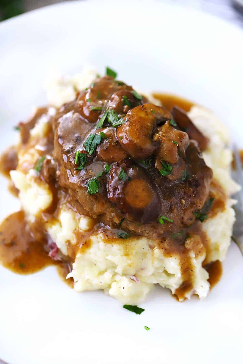 Стейк «Солсбери» — один из тех невероятно сытных рецептов, которые невозможно не полюбить. Я имею в виду, что в нём может не нравиться? Особенно когда он покрыт густым грибным соусом и подаётся с нежным картофельным пюре. Это как быстрый и простой вариант мясного рулета, но С СОУСОМ. Лучше не придумаешь!