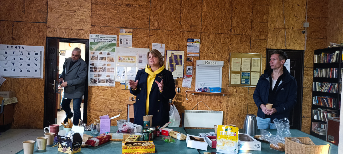 Садоводы отстроили прекрасное здание правления, в которое мы вернулись, чтобы согреться и попить чаю со сладостями. Вкусняшки привезли к общему столу председатели, члены правления и наши соратники по садоводческому движению. Все нашли себе собеседников на чаепитии и делились опытом, разрешали проблемы своих садоводств, находили компетентных коллег, которые рассказывали как они решили озвученные проблемы в своих садоводствах и огородничествах.