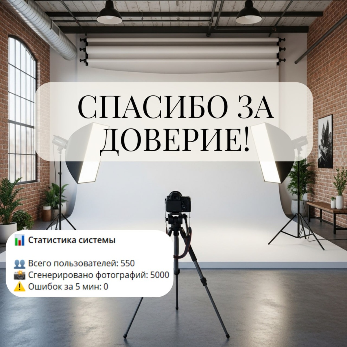 🎉 Спасибо, что вы с нами! Сегодня нас уже 550 пользователей, и вместе мы создали более 5000 фотографий 💥 Это не просто цифры — это сотни историй, образов и эмоций, которые вы доверили нашему боту. Мы невероятно благодарны каждому, кто попробовал нейрофотосессию, кто возвращается снова и снова, кто пишет тёплые отзывы и делится результатами. Это лучший знак того, что наш проект действительно приносит пользу ❤️ Спасибо за доверие и вдохновение. Вы — главная причина, почему мы продолжаем развиваться и улучшать бота каждый день.