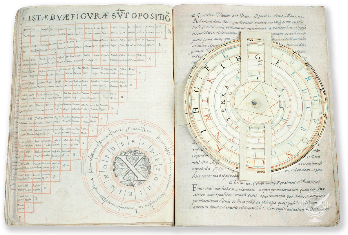 Раймунд Луллий в XIII веке придумал свою Ars Magna — великое искусство комбинирования. Концентрические круги, на которых начертаны понятия: Бог, благость, величие, вечность, мудрость. Крути эти круги, складывай понятия в разных комбинациях, и вот — новая истина выходит из-под колеса, как хлеб из печи. Луллий был уверен: достаточно правильно закодировать божественные атрибуты, и машина сама начнёт говорить о Боге.