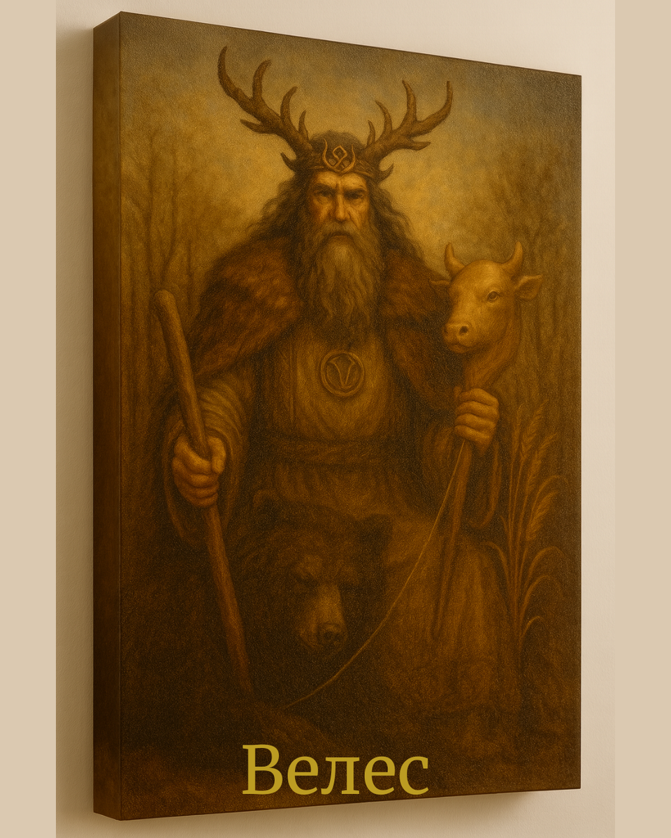 Он не воюет громом — он движется тенью. Его сила — не удар, а глубина. Велес владеет богатством — не только золотом, но и мудростью, что добыта трудом, болью, поиском.