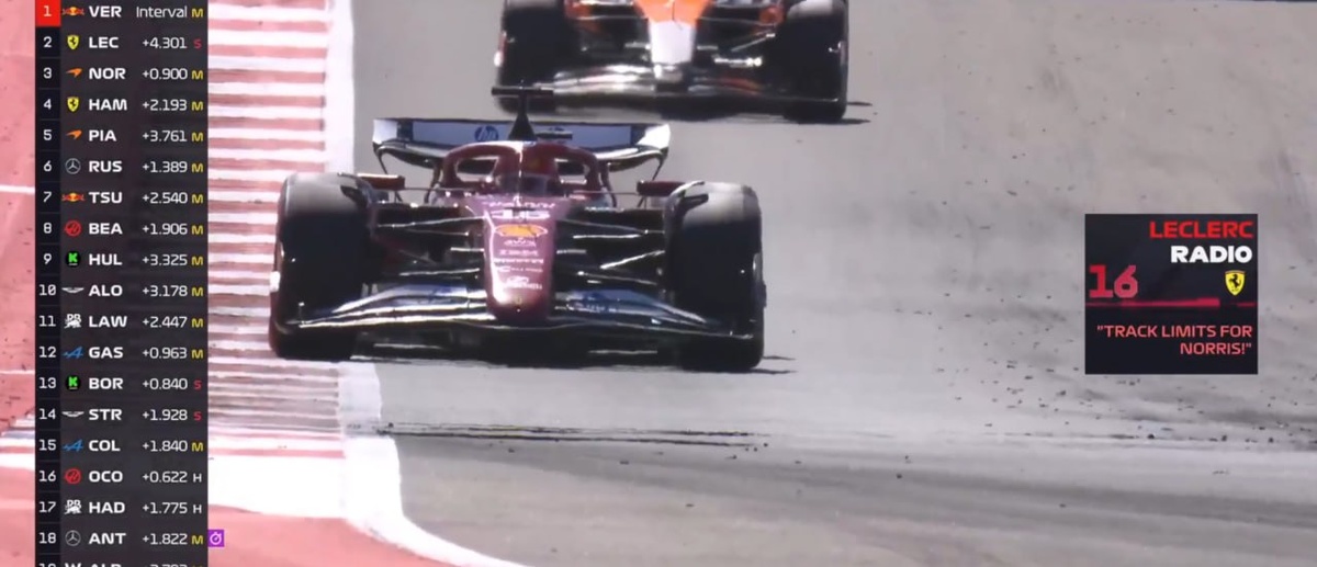 А ещё жалуются, что в зеркалах болида плохо видно происходящее позади. Леклер в них умудряется подмечать и лимиты трассы у Норриса