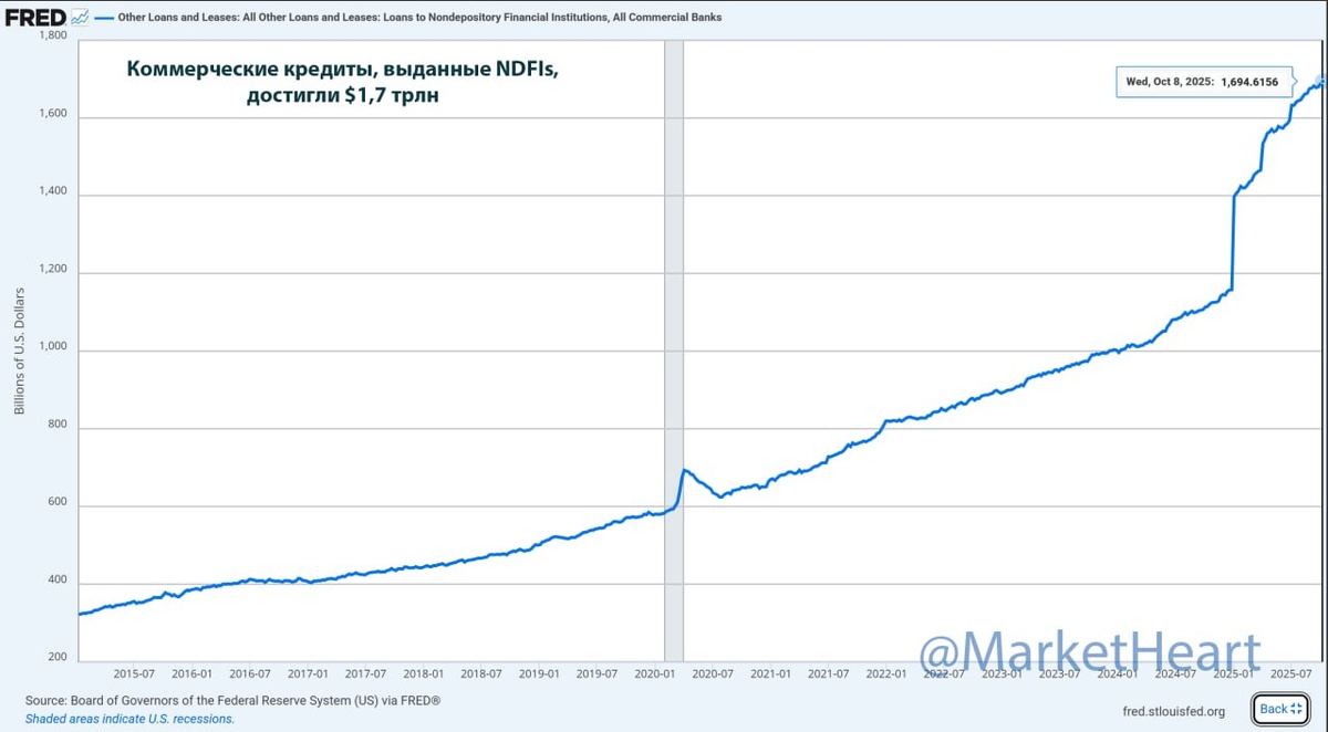 В ответ на пост Подраскроем мысль Дениса и Джейми Даймона. Гендир JP Morgan подчеркнул, что обвалы на рынке субстандартных автокредитов — это канарейки в угольной шахте. Во-первых, стоит разобраться с механизмом NDFIs (сектор некредитных финансовых учреждений) или [парам-пам-пам] #ShadowBanking После финансового кризиса 2008 традиционные банки сильно сократили выдачу кредитов рискованным заемщикам (тем, у кого низкий кредитный рейтинг, или «субстандартным»). Вместо них эту роль взяли на себя хедж-фонды и другие нерегулируемые финансовые компании, которые стали своего рода перекупщиками. Они берут деньги в долг у банков под низкие проценты (как «надежные заемщики») и перераспределяют их субстандартным клиентам под более высокие ставки. В такой системе «теневого банкинга» риски маскируются (например, «упаковкой» через секьюритизацию): банки и инвесторы могут вкладывать в активы, которые кажутся надежными (и имеют соответствующий рейтинг!), хотя на деле они связаны с крайне рискованными