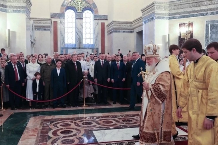Патриарх Московский и всея Руси Кирилл 19 октября возглавил церемонию освящения главного воинского храма Южного военного округа — Храма Святого Георгия Победоносца в Ростове-на-Дону. Торжественная служба прошла в присутствии высокопоставленных чиновников и военных руководителей. Среди присутствующих были полномочный представитель президента РФ в Южном федеральном округе Владимир Устинов, губернатор Ростовской области Юрий Слюсарь, Митрополит Ростовский и Новочеркасский Меркурий, глава Донецкой Народной Республики Денис Пушилин, командующий войсками Южного военного округа генерал-полковник Александр Санчик. После церемонии патриарх обратился к собравшимся с речью, подчеркнув значение постройки храмов для духовного возрождения нации и укрепления государственности. Строительство храма началось в 2012 году и продолжалось 13 лет. Решение о присвоении ему статуса главного храма Южного военного округа было принято в 2021 году. Архитектурный облик храма выдержан в византийском стиле. Высота со