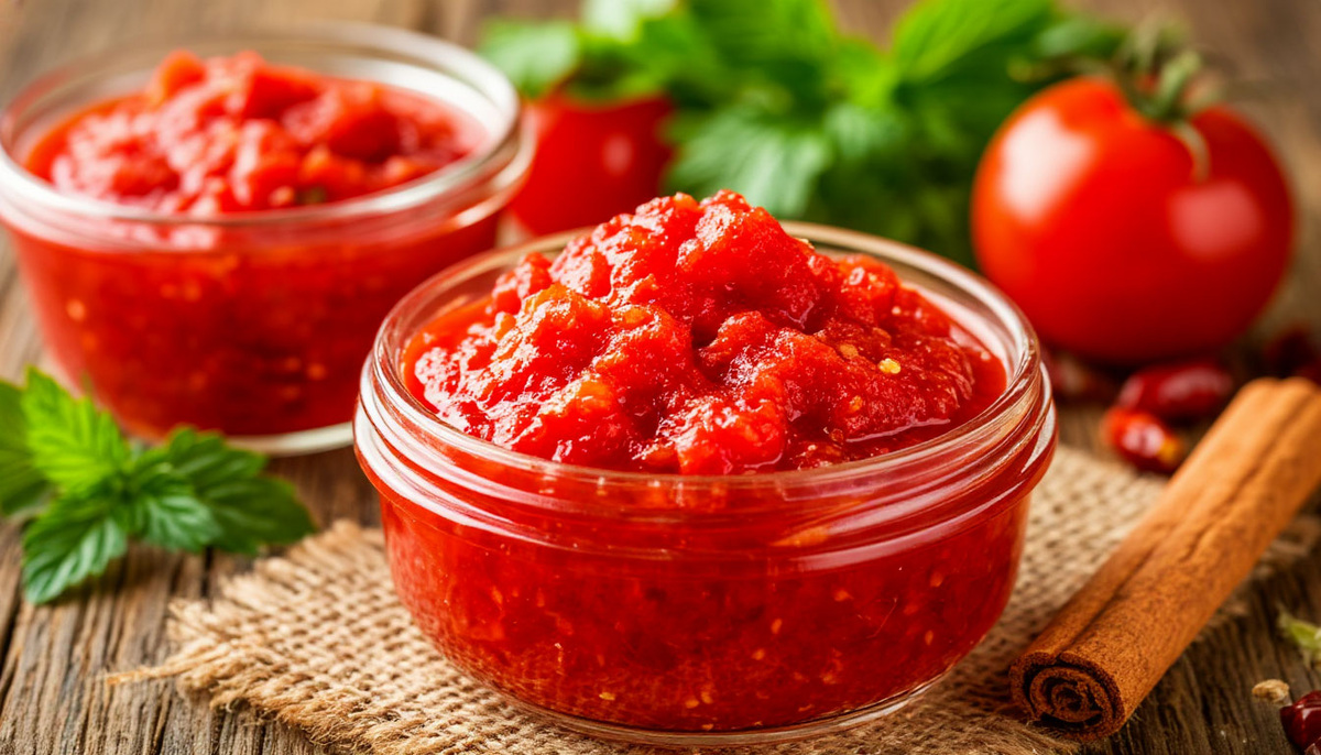 Хреновина получается густой, ароматной, ярко-красной, с насыщенным вкусом свежих помидоров, чеснока и жгучего хрена. Её пикантность бодрит и отлично подчёркивает вкус любого блюда — от варёного мяса до бутербродов. Время приготовления: Выход около 1,5–2 литров. на 2 литра хреновины 💡 По вкусу можно добавить 1–2 ст. ложки уксуса 9% — для более кислого и стойкого варианта. 1. Подготовьте ингредиенты: Помидоры вымойте, обсушите, удалите плодоножки. Если кожица плотная, можно ошпарить кипятком и снять её, но это не обязательно. Хрен очистите, нарежьте кусочками по 3–4 см. Чтобы не плакать натирайте хрен на улице или над включённой вытяжкой. Чеснок очистите. 2. Прокрутите всё через мясорубку: Сначала измельчите хрен (так мясорубку потом легче промыть). Затем добавьте чеснок и помидоры. Перемешайте всё до однородной массы. 💡 Можно использовать блендер, но мясорубка даёт более традиционную текстуру. 3. Приправьте: Добавьте соль и (по желанию) сахар, перемешайте. Попробуйте: если хотите остр
