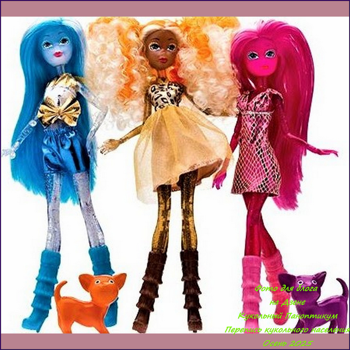 Добро пожаловать в «Кукольный Паноптикум»! Дорогие друзья, верные читатели и случайные гости, здравствуйте! Сегодняшний день — как раз тот самый момент, когда пыль на полке с коллекцией начинает мерцать от любопытства, а старые коробки шепчут: «Открой меня, я храню историю!» Мы снова вместе, чтобы заглянуть за кулисы кукольного мира — туда, где пластик становится душой, а ткань — судьбой. Сегодня речь пойдёт о куклах, чьи имена звучат как заклинания: Midnight Magic Lovely Patsy. Куклы поставлялись в сете с домашним животным. Выпускались эксклюзивно для Family Dollar в начале 2000-х годов. Эти куклы имеют образ ослепительных девушек с внешностью пришельцев из космоса: куклы были прозрачные или матовые и разных цветов. Вдобавок, куклы Midnight Magic от выпуска к выпуску отличались формой рук и ростом. Надпись на обратной стороне коробок рассказывает об истории кукол и гласит: сага о Midnight Magic начинается в маленьком городке Джонсвилл, в округе Нигде, в США. Собственно сама история:
