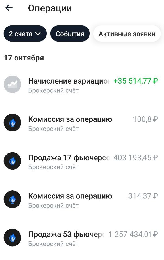 Вот в пятницу на этом фьючерсе я зафиксировала прибыль - чуть меньше 35к. Скрин с начислением вариационной маржи чуть ниже. Я купила фьючерс, потом докупила и еще раз докупила. В итоге у меня оказалось 70 лотов с ценой контракта около 1.6 миллионов рублей!!! Поскольку это фьючерс, у меня на счете была заблокирована куда меньшая сумма, около 350к. И в целом я могла бы купить и 140 лотов, но мне было бы уже не комфортно, при такой цене контракта ведь ошибка стоит еще дороже... И вот тут я не уверена, что каждому из моих подписчиков будет комфортно войти в позицию на 1.6 миллиона рублей.