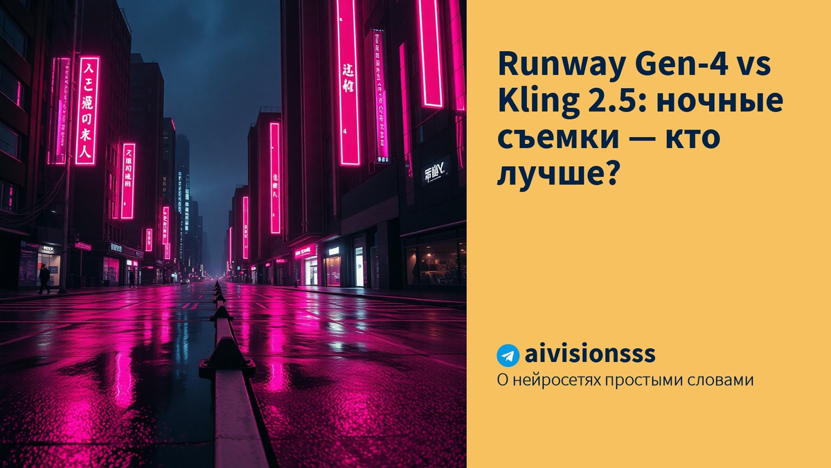 Узнайте, как выбрать между Runway Gen-4 и Kling 2.5 для ночных сцен: реалистичный свет и стабильность или креативные эффекты и яркое освещение.