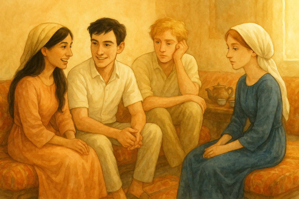 - Я и не спорила, просто мы так общаемся. – так же тихо ответила ей путешественница. Девушки все еще стояли в дверях, не зная, входить им или уйти в другое помещение. Дочка хозяев непонимающе на нее посмотрела. – Мы с ребятами дружим, знаем друг друга очень давно, и все они стали мне как братья родные, особенно во время путешествия. Мы вот так общаемся между собой, и все считают это нормальным. Если у тебя в друзьях ходит Олли, то со временем привыкаешь, что над тобой постоянно подтрунивают, и уже сама начинаешь отвечать ему тем же самым.
