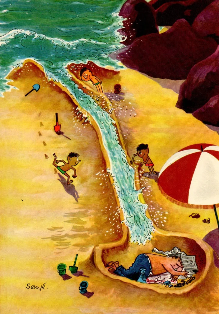 Работы карикатурного жанра чаще всего относят к лёгкому чтиву и развлечению. Но есть художники, рисунки которых не только развлекают, но и остаются в памяти, как что-то близкое и родное. Например, такие, как карикатуры французского художника Жан-Жака Сампе. Родился будущий карикатурист в начале прошлого столетия в 1932 году в маленьком французском городке Пессак. С детства мальчик был «не подарком»: учёба давалась с трудом, а его поведение вынуждало даже самых добрых и сдержанных учителей «опускать руки». Проучившись или... промучившись таким образом несколько лет, парень все же был исключен из школы, но это нисколько не огорчило Жан-Жака. Наоборот появилось желание искать свой путь и профессию. Так, к девятнадцати годам Сампе решил, что хочет рисовать смешные картинки и, несмотря на то, что у него нет специального художественного образования, точно станет карикатуристом. Конечно же, этот путь был нелёгок и признание его творчества не сразу пришло к художнику. Но молодой человек упор
