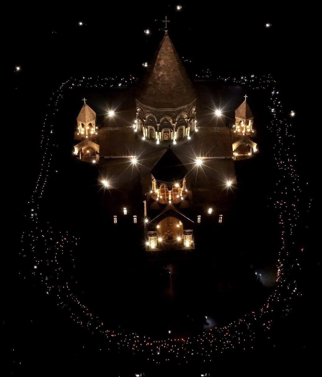 Ուխտավորների մոմերի լույսերի մեջ՝ Էջմիածնի Մայր Տաճարը