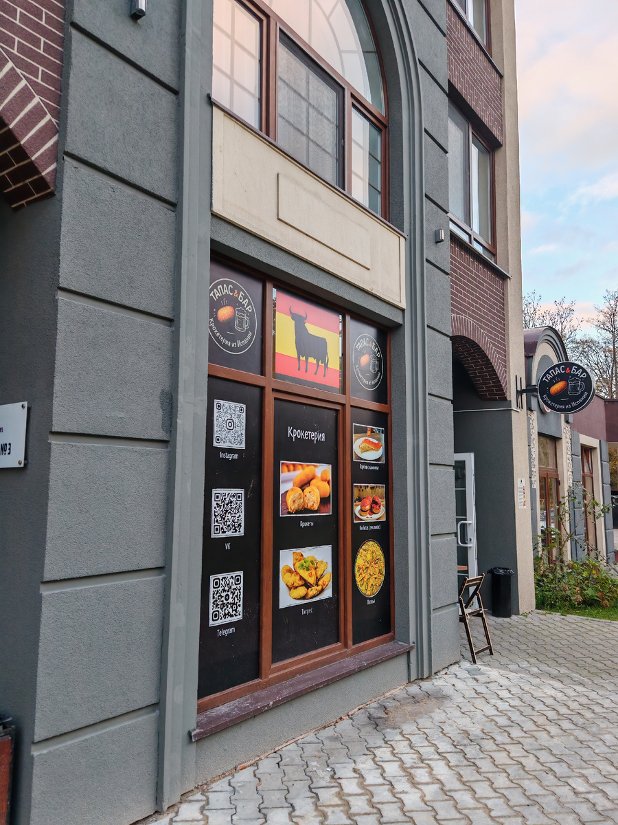 Обожаю испанскую кухню. Почему-то у большинства людей познания этой кухни заканчиваются на супе гаспаччо, хамоне и паэлье. Да, хамон это почти сакральное в Испании. Есть легенда, что после изгнания евреев из Испании, проверяли наличие еврейских корней хамоном, если съел кусочек свининки, оставайся в Испании, нет- давай до свиданья. Но не хамоном единым славится Испания. Есть у них такая замечательная штука как тапас. Что такое тапас даже трудно описать словами. Это такие малюсенькие порции закусок с разными начинками. Это может быть овощное рагу, морепродукты, в общем- все что попало под руку. Закуска может быть нанизана на зубочистку, разложена в тарталетку или слоеную трубочку, а может быть в виде маленького бутерброда или тоста. Вариаций очень много, на любой вкус. И вот я совершенно случайно узнала, что в Зеленоградске есть тапас-бар где готовят не только закуски, а еще и настоящую паэлью. Мариус у меня тоже фанат испанской кухни и в воскресенье мы покатили в Зеленоградск. С паэл