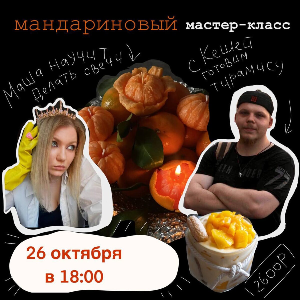 🍊26 октября в 18:00🍊 Состоится мандариновый мастер-класс ! 🔥Вы научитесь делать крутые свечи в виде мандаринов и приготовите мандариновый десерт! Итак, 🥸Ведущая Мария-само творчество и терпение-все объяснит,покажет и научит делать мандарины-свечи,чтобы как настоящие,да)) 💛Каждый сделает два мандарина: один очищенный , другой в шкурке;мы их упакуем в коробочку. Классный подарок 🍊 🥸Кеша-сын шефа Антона,ведет мастер-класс по идеальному,а к тому же еще и мандариновому тирамису!!! 💛приготовим тирамису с Иннокентием и съедим его с кофе☕️( раздадим рисованные рецепты) Чай кофе прилагаются С собой можно взять спиртное Продолжительность мастеркласса 3 часа ☀️Приглашаем детей от 10 лет и взрослых. ✅Стоимость 2600₽ с человека Количество мест ограничено Адрес студии: Варшавское шоссе 168 подъезд пять, метро Лесопарковая Запись у администратора Надежды 8 927 559 64 40