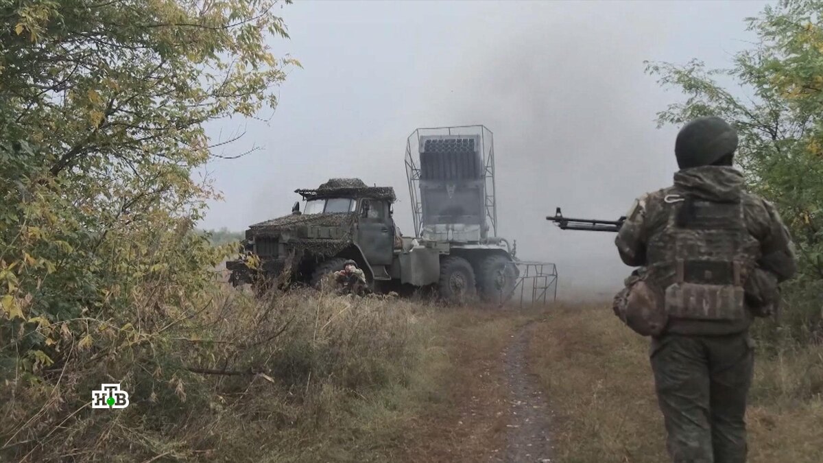 [ Смотреть видео на сайте НТВ ] Российская армия медленно, но неотвратимо продвигается в приграничье и одновременно громит объекты украинской энергетики, используемые для нужд ВСУ. Киевляне ночуют в холодных вестибюлях метро и призывают Зеленского спускаться к ним. В глубине лесполосы в курском приграничье стоит замаскированная гаубица М-46. Дальность у орудия приличная — под 30 километров, поэтому очень часто расчет работает по тыловым районам. Снарядов на позиции у М-46 более чем достаточно, несмотря на то, что калибр у орудия очень редкий — 130 миллиметров. И это показатель налаженной логистики в условиях постоянного продвижения вперед. Расчет получает цель — опорный пункт ВСУ. Взрыватель на снаряде выставлен с задержкой — чтобы взорвался не сразу, а сначала пробил крышу блиндажа и сдетонировал внутри. Снаряд улетает на украинские позиции, ему нужно примерно полторы минуты, чтобы достичь цели. Расчет перезаряжается и ждет корректировки. Следует еще один выстрел. Оживает рация — разв