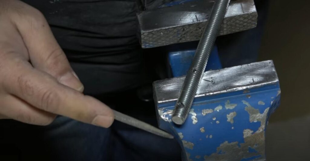 Чтобы сделать стальную пружину, нам потребуется использовать для этого простое самодельное приспособление, собранное из палок и... (ой, простите - из резьбовой шпильки и длинных гаек). Итак, не будем терять время и зря и приступим сразу к сборке приспособления, которое правильно назвать кондуктором для изготовления стальных пружин. 👉 Первым делом необходимо отрезать резьбовую шпильку требуемой длины. На конце шпильки высверливаем отверстие диаметром 5—6 мм под вороток, который можно изготовить из болта или винта. Далее отступаем некоторое расстояние и высверливаем еще одно отверстие диаметром 1 мм — для стальной проволоки, из которой будет в дальнейшем изготавливаться пружина. Теперь нам потребуется удлиненная гайка. Обрезаем ее с одной из сторон и высверливаем отверстие под проволоку. Затем приступаем к сборке нашего самодельного приспособления. Здесь всё просто: сначала накручиваем на резьбовую шпильку две удлиненных гайки и вставляем вороток. Сначала нужно будет надежно зафиксиро