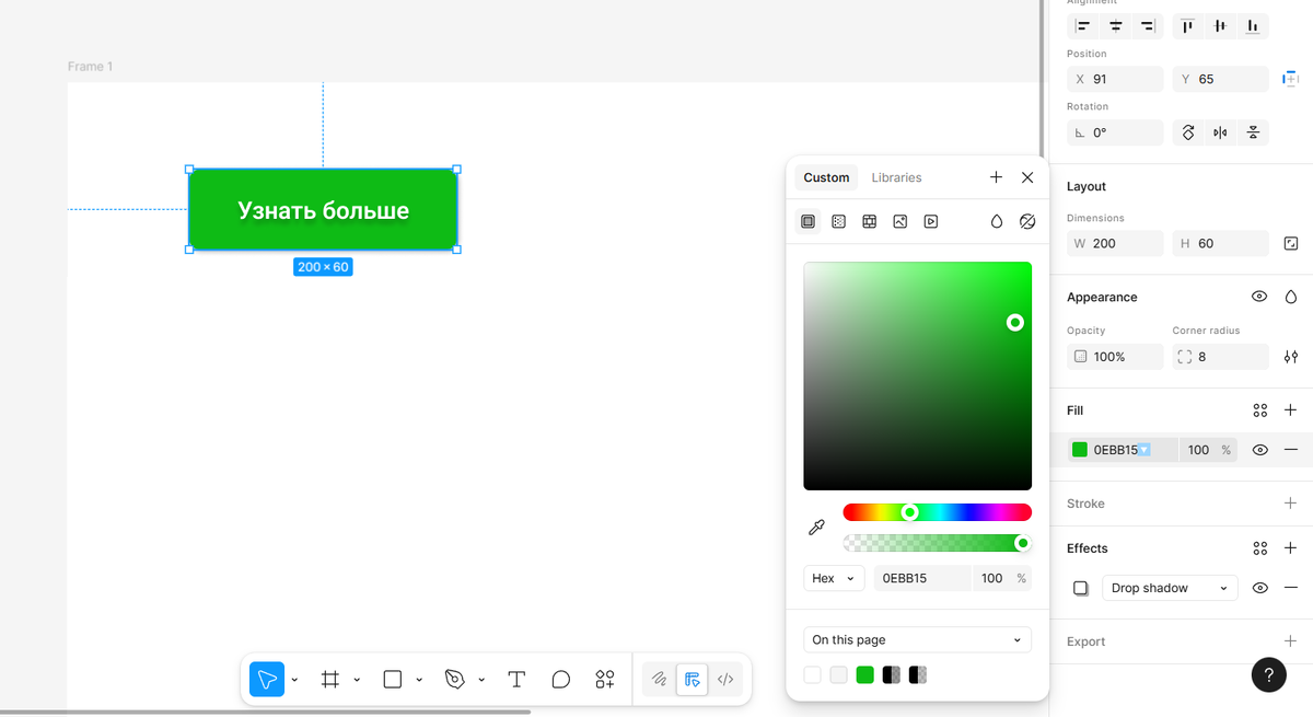 Приветствую, дорогие читатели! Помните, как мы создавали нашу первую кнопку? Синий прямоугольник, белый текст — уже смотрелось неплохо. Но мир дизайна гораздо красочнее! Цвет — это не просто «красиво». Это язык, который сообщает пользователю: «Это кнопка», «Здесь заголовок», «А это — предупреждение». Сегодня мы будем волшебниками, в чьих руках цвет оживает. Мы научимся не просто красить элементы, а управлять цветом осознанно и эффективно. Допустим, мы хотим перекрасить нашу старую кнопку из синей в сочный зеленый. Перед вами — целый арсенал: Волшебство случилось! Ваша кнопка стала зеленой. Но что, если цвет нужно повторить еще для 50 элементов? Не запоминать же HEX-код! Об этом — ниже. Вы увидели идеальный цвет на картинке, в логотипе или в другом макете. Вам не нужно гадать его код! Есть способ проще. Цвет скопирован! Это самый быстрый способ поддерживать цветовую гармонию, подхватывая оттенки из фотографий или других элементов дизайна. Представьте: у вас 20 экранов, и везде используе