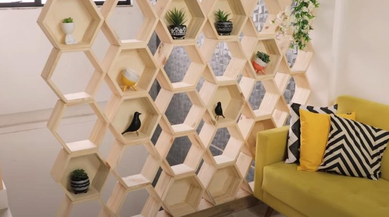При зонировании или перепланировке внутренних жилых помещений в частном доме или квартире нередко возникает необходимость в строительстве дополнительной перегородки, которая не была ранее предусмотрена по проекту. 👉 Что ж, поделимся с вами одним из вариантов изготовления такой перегородки - уверены, что она многим придется по душе. Достоинств у неё очень много. Для изготовления перегородок можно использовать самые разные материалы: фанера, доски, гипсокартон, стеновые блоки и другие. В нашем случае конструкция будет деревянной. Дешево и сердито, как говорится. Своим личным опытом поделился с нами автор YouTube канала Paloma Cipriano. Рекомендуем взять себе эту оригинальную идею на заметку! Первым делом необходимо определить количество шестиугольных коробов, которые потребуются для перегородки. Их можно изготовить из фанеры или досок. Перед началом работы обязательно составьте чертёж перегородки с указанием всех размеров. Это поможет избежать ошибок и лишних расходов материалов. 👉