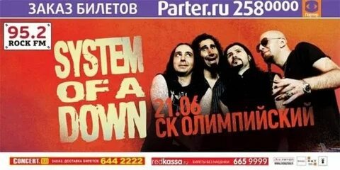 21 июня 2011 года московский спорткомплекс «Олимпийский» стал эпицентром одного из самых громких музыкальных событий года — концерта легендарной группы System of a Down (SOAD). Это выступление стало завершающим в европейском туре коллектива и вызвало небывалый ажиотаж среди российских фанатов. Подготовка и ожидания. К 2011 году System of a Down уже были культовой группой с пятью студийными альбомами, премиями «Грэмми» и MTV, а также репутацией команды, которая сочетает в себе: * агрессивный метал; * мелодичные пассажи; * социально-политическую лирику; * элементы армянской народной музыки. После пятилетнего перерыва в активной гастрольной деятельности возвращение SOAD на сцену воспринималось как событие исключительной важности. Билеты на концерт были раскуплены задолго до даты выступления, а «Олимпийский» оказался заполнен почти под завязку — по разным оценкам, на шоу собралось 20 тысяч зрителей. Атмосфера на концерте. С самого начала концерта стало ясно: System of a Down не утратили