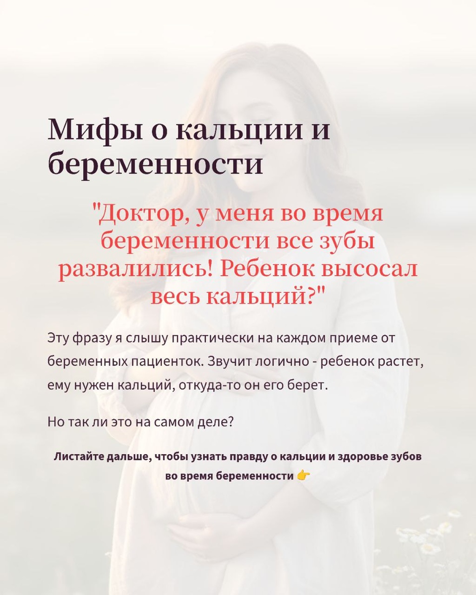 МИФЫ О КАЛЬЦИИ И БЕРЕМЕННОСТИ: ПРАВДА, КОТОРУЮ ДОЛЖНА ЗНАТЬ КАЖДАЯ МАМА Доктор, у меня во время беременности все зубы развалились! Ребенок высосал весь кальций!" Знакомо? Каждую неделю в моем кабинете я слышу эту фразу от молодых мам. И каждый раз мне хочется остановить эту цепочку заблуждений, которые передаются из поколения в поколение как неоспоримая истина. ❌ ГЛАВНЫЙ МИФ, КОТОРЫЙ ПОРТИТ ЖИЗНЬ МАМАМ "Ребенок высасывает кальций из зубов матери" — это один из самых стойких мифов в стоматологии. Но давайте разберемся с научной точки зрения. ПОЧЕМУ ЭТО НЕПРАВДА: Физиология женского организма устроена мудро. При недостатке кальция организм действительно использует свои запасы, но НЕ ИЗ ЗУБОВ. Зубная эмаль — это самая твердая ткань в человеческом организме. Она на 96% состоит из минералов и не участвует в кальциевом обмене. Если организму нужен кальций для развития плода, он возьмет его из костей, а не из зубов. Это подтверждено множественными исследованиями. В 2024 году Американская стом