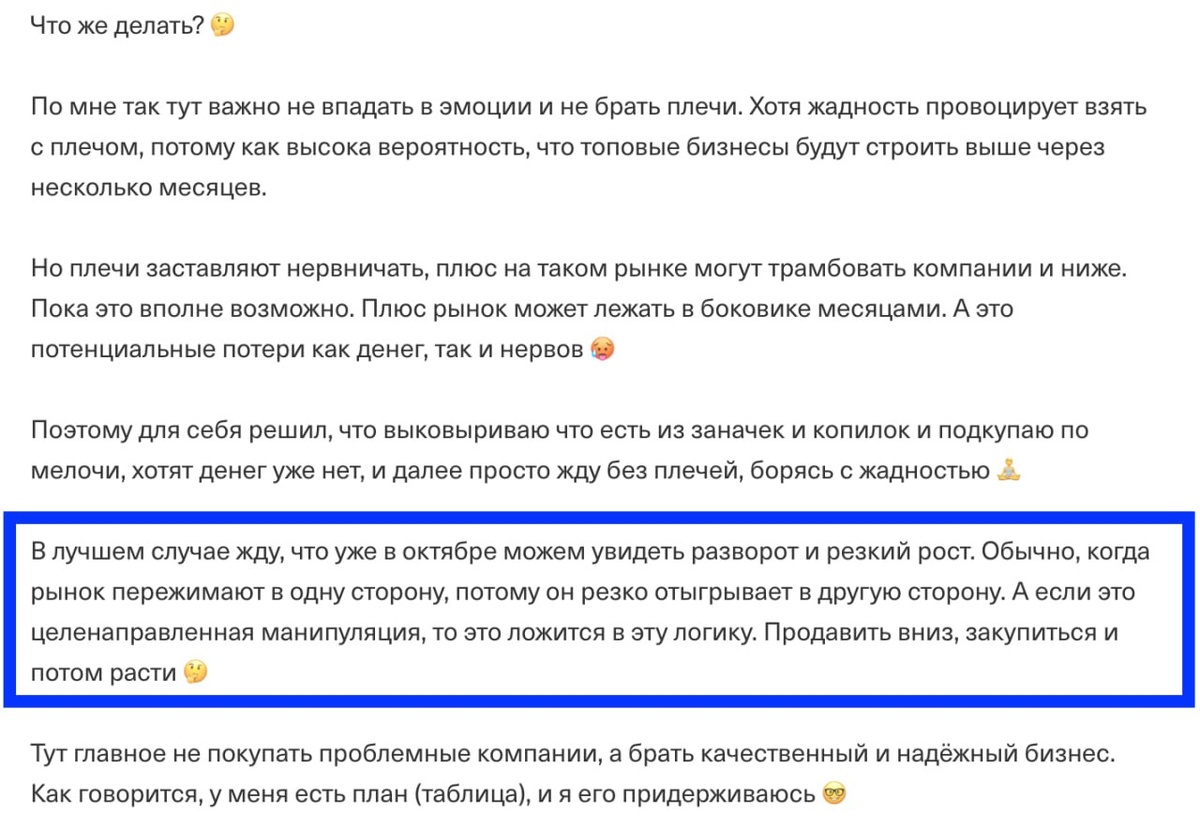 Немного из теории заговора 🤫 Уже сейчас большое число людей заметили, что рынок системно продавливали, что привело к почти непрерывному снижению в последние два месяца. Все думали, гадали, а в чём может быть причина? 🤔 Сначала была версия, что продают под возможный обмен замороженных активов. Но эта версия оказалась слабой, плюс видно было, что продажи идут так, словно кто-то не пытается аккуратно выйти из позиций, а делает всё, чтобы опускать котировки 😔 Но если целью было именно опустить рынок как можно ниже, то всё логично. Вопрос только ЗАЧЕМ? Вот вам версия 👇 Рынок начали валить после встречи на Аляске. Если политические инсайдеры что-то знают о планах по Украине и эти планы предполагают потепление отношений с США, а тут ещё и тренд на смягчение ДКП, то в совокупности возникает уникальная ситуация, когда можно затариться и хорошо заработать. Но если ты жадный и можешь продавить наш слабый рынок, то почему бы не опустить его пониже и не затариться на низах, чтобы заработа