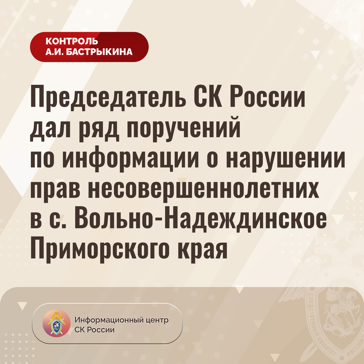 Председатель СК России дал ряд поручений по информации о нарушении прав несовершеннолетних в с. Вольно-Надеждинское Приморского края