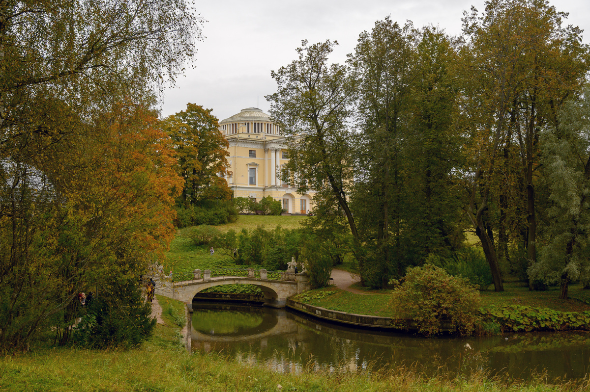 Давно я не бывал в Павловске — тихом уголке Ленинградской области — и ещё дольше не делал там фотографий. Но этой осенью, снова оказавшись в Петербурге, не удержался: съездил туда, чтобы прогуляться и поснимать. Павловск соседствует с Пушкином (бывшим Царским Селом), куда устремляется основной поток туристов. Сам же он остаётся в тени — и именно это меня в нём особенно привлекает. Здесь нет суеты, зато есть тишина, простор и атмосфера ушедшей эпохи. Погода, к счастью, не подвела: хоть и было пасмурно, но ещё достаточно тепло для неспешной прогулки. Павловский парк я осваиваю постепенно — он огромен, и ни разу мне не удавалось обойти его целиком, зафиксировав все исторические объекты. Всегда остаётся что-то «на потом». В отличие от Пушкина или Петергофа, Павловск — это не про грандиозные дворцы, а скорее про ландшафт, природу и гармонию. Дворец здесь, конечно, есть — и он доминирует в композиции парка, — но главный герой — сама природа. Особенно осенью, когда парк раскрывается во всей