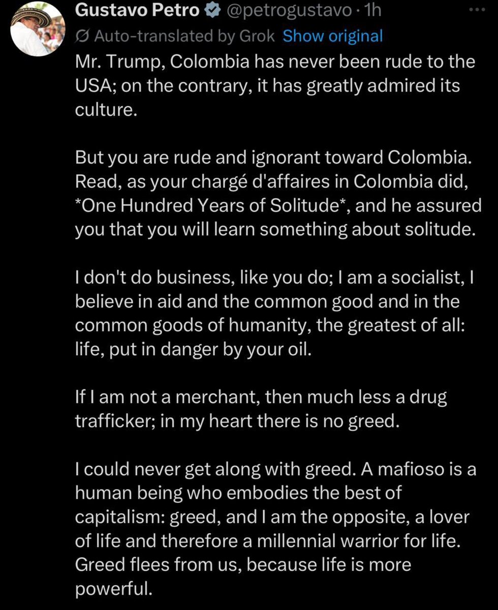 Colombia’s Petro FIRES verbal shots at Trump ‘RUDE’ and ‘IGNORANT’ Colombia ‘ADMIRES’ US’ culture ‘In my heart there is no greed’ US Prez dubbed him ‘ILLEGAL drug leader’