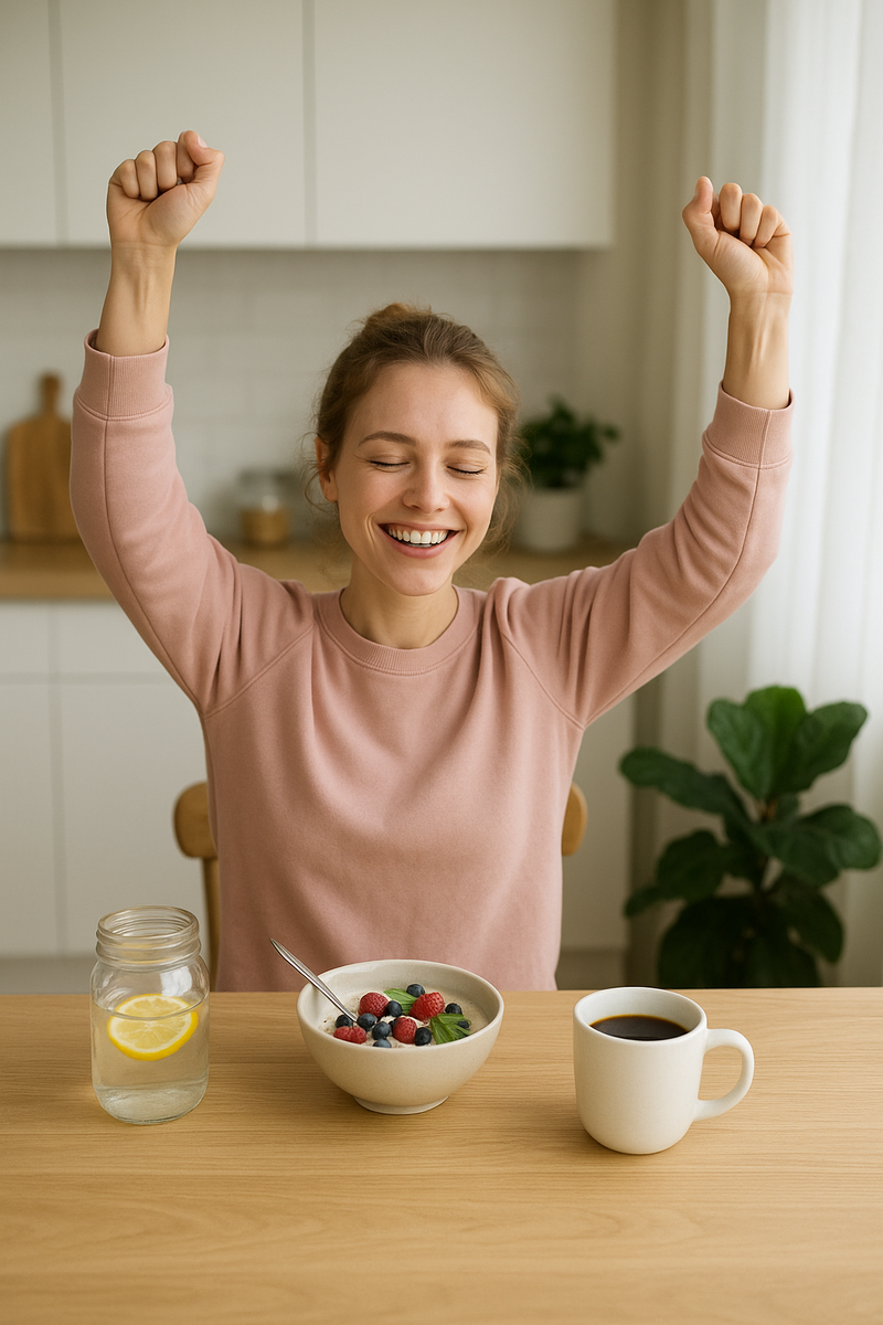 Три будильника, кофе в термокружку, лифт не работает, а я — в тапках и с мокрыми волосами. Так вот. Я решила: повторю утро Ольги Карпуть. Научусь быть zen, сиять изнутри и — главное — успевать всё с улыбкой. Ха! Проснулась я... в шесть утра. Без будильника. Ну, почти — телефон завопил «Wake up, beauty!», а я выронила его на пол. Романтика закончилась на первой минуте, но ладно. Главное — настрой. Ольга, как она говорит, начинает день с растяжки и дыхания. Я тоже. Только мой кот подумал, что я играю, и повис на моём капюшоне. Так и стоим: я — воплощение баланса, кот — воплощение хаоса. Потом — стакан тёплой воды с ли