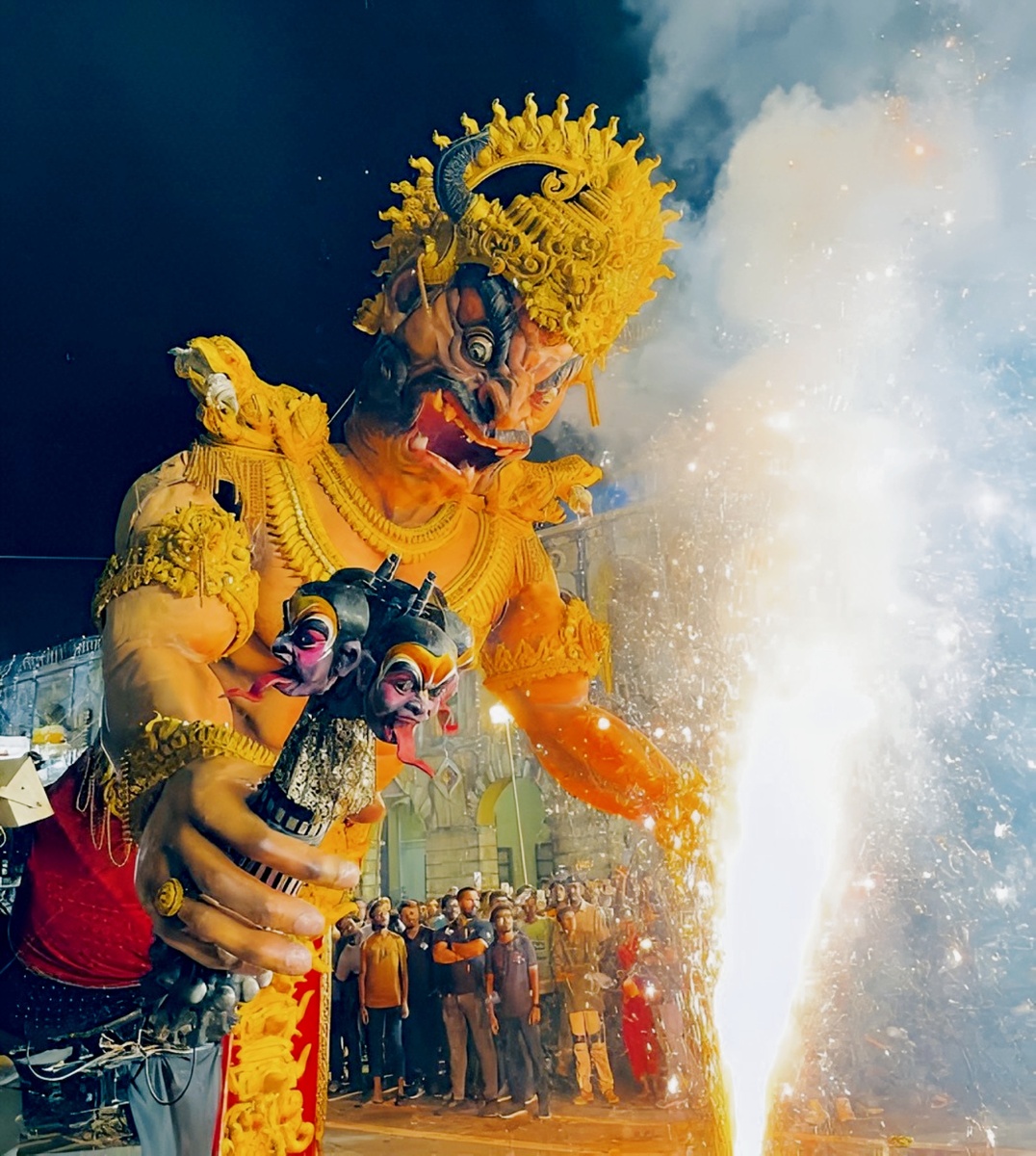 🔥 Прямо сейчас, в ночь с 19 на 20 октября, по всей Индии сжигают чучела демонов, символически уничтожая все темное, что мешает свету и процветанию прийти в их дома. Это кульминационная ночь перед пуджей богине Лакшми, которая пройдет 20 октября. В это время по всей стране зажгут миллионы ламп, чтобы осветить путь богине благополучия и изобилия 🕯