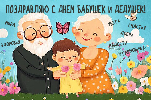 Поздравить бабушку и дедушку с праздником можно с помощью открыток из нашей подборки.