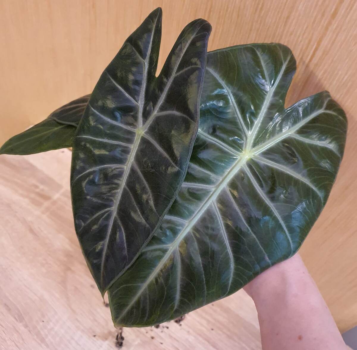 Алоказия "Пинк Дракон" ("Pink Dragon") - Это растение может вырастать до 100 см. Имеет листья стреловидной формы с заостренными кончиками и довольно крупного размера. Окраска листьев темно-зеленая, а нижняя сторона листа имеет пурпурный цвет. Черешки хорошо развитые и обладают розовым оттенком. Про своего розового дракона, я уже упоминала где то ранее. Он у меня в свое время пострадал так, что я на него махнула рукой! Кочерыжку не стала даже из стакана вынимать. Просто затолкала его в дальний угол стеллажа…. Рука не поднялась выкинуть, но и что то пытаться делать я тоже не стала, думала все... А время спустя он очухался и неожиданно пошёл в рост! Я, конечно, обалдела тогда! И, конечно, очень обрадовалась, что оставила стакан с останками растения на полке! 🌸🌸🌸🌸🌸🌸🌸🌸🌸 Для счастья ему нужно: 🌸 Как и все алоказии- Дракон теплолюбив. Температура для выращивания этого растения в весенне-летний период примерно от +23 до +25°C, а в осенне-зимний период – от +18 до +20°C. 🌸Для выр