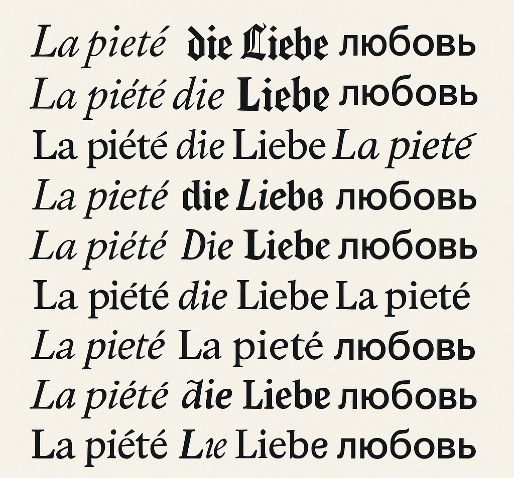 Теперь всё по-другому. Мы давно не общались и не собираемся. Вспоминаю её до сих пор. Выключаю альтер-эго и перехожу на себя, пишу про неё. С тех пор я повстречал много девушек, самых разных, похожих на неё не нашёл. И, наверное, променял бы их всех на неё одну. Сказал бы ей, что она моя la piété, die Liebe или просто любовь.