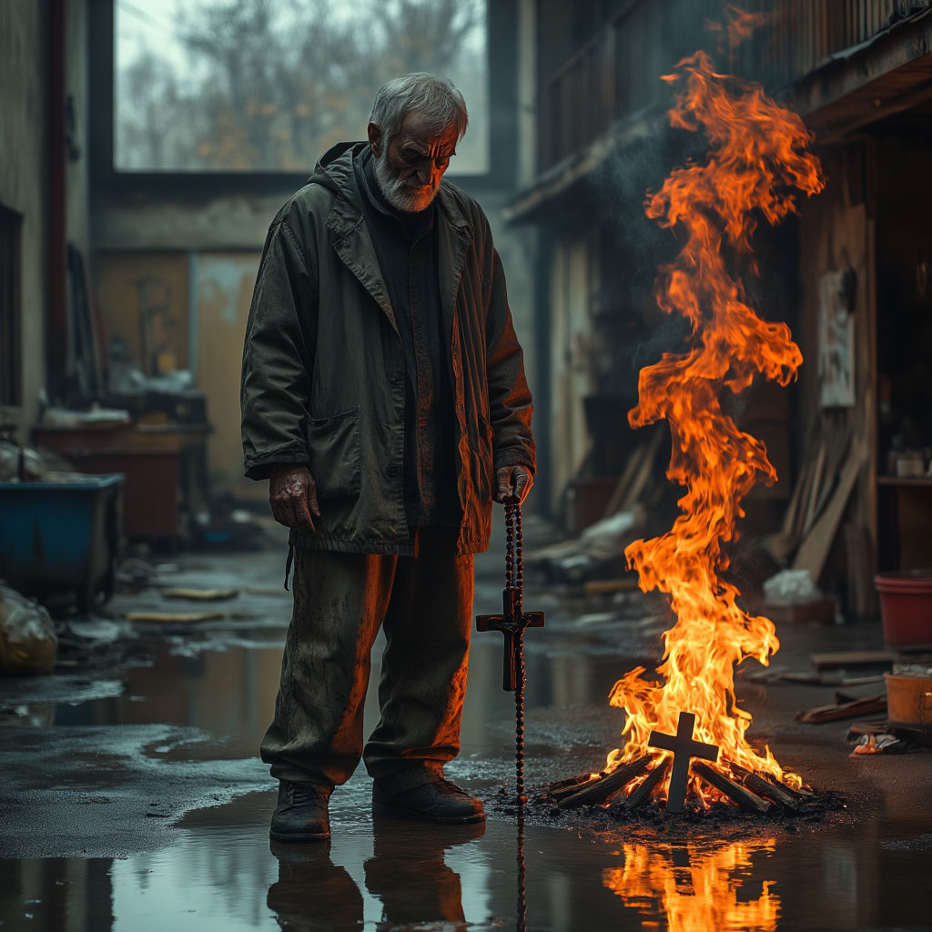 Горящий гараж превратился в ад. Сечин, объятый огнём, бегал и кричал, пока не рухнул. Вадим, пытаясь выбраться, споткнулся о тело Юрки — мальчик лежал бездыханный, с тем же ужасом в глазах, что и Стёпа, а в руке всё ещё сжимал тот злосчастный крестик.