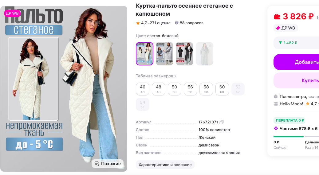 Эта светло-бежевое стеганое пальто… Сколько раз оно уже спасало меня и от промозглой мороси, и от ледяного ветерка! Посмотрите сами: современный дизайн, лаконичные линии, а еще этот объёмный стежок, который сразу задаёт нужный тон образу – элегантность без скуки. Люблю капюшон: затянула потуже – и даже в самую промозглую ночь возвращаться домой приятно. Кстати, ткань пальто — вот он, мой личный барьер от любой непогоды: не продувает, не промокает. И удивительно быстро сохнет!