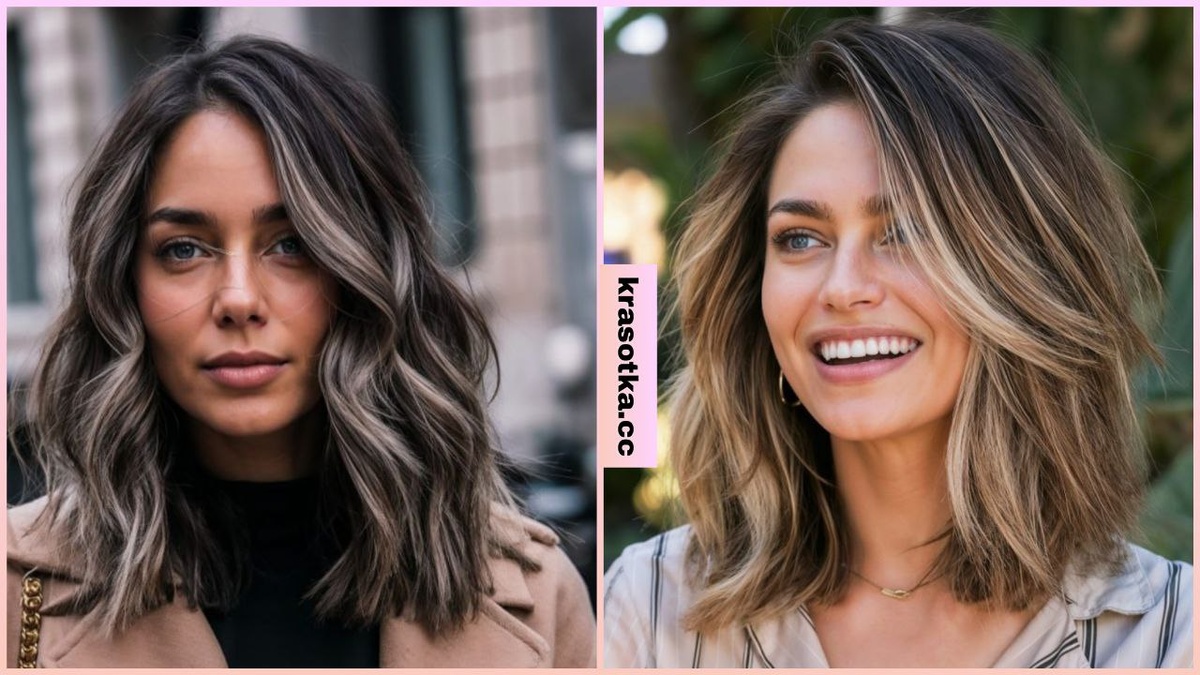В этом стиле используется техника "балаяж" длиной до плеч с легким мелированием, создающим поразительный контраст. Мягкие волны придают объем и текстуру.