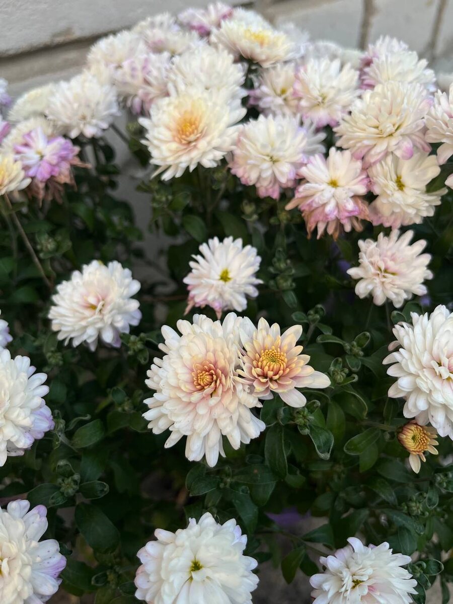 В ответ на пост Та самая белая хризантема. Все еще цветет и все еще не белым🥹 Я не понимаю с чем это связано, но очень радует, что купила и белую, кремовую и фиолетовую и пыльно-оранжевую в одном💪🏻 #садовое