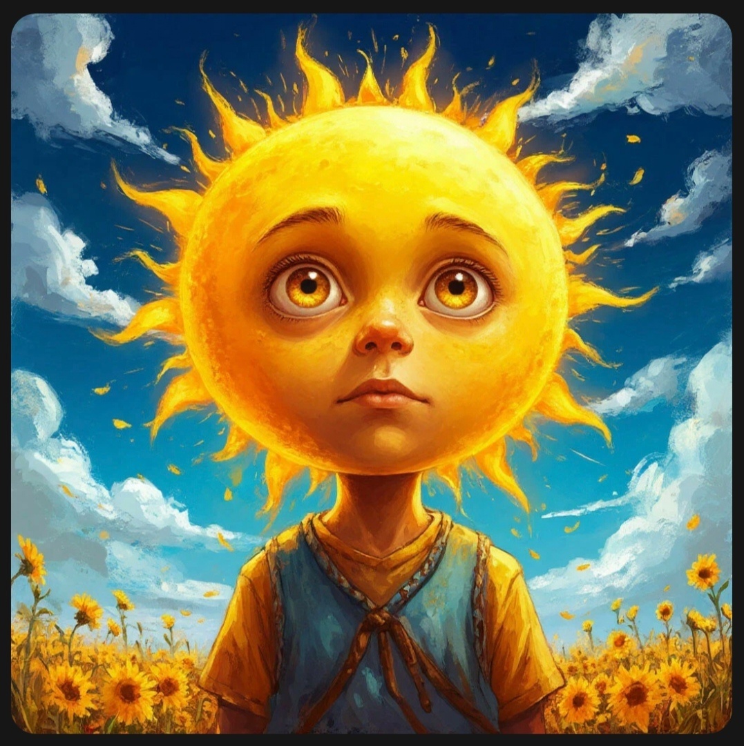 В одной из далеких-предалеких галактик, где светила были живыми существами, родился маленький солнечный мальчик. Звали его Соль. Он был дивным созданием: его кожа излучала мягкий золотистый свет, волосы были подобны жидкому янтарю, а в глазах плескалось целое море тепла. Соль рос в атмосфере восхищения. Его родители, придворные звезды, млели перед ним и твердили лишь одно: "Ты — самое прекрасное дитя во всей Вселенной! Твой свет ослепителен!" И мальчик сиял в ответ, озаряя их ласковым сиянием, от которого все вокруг расцветало и пело. Когда он вышел за пределы своего созвездия, он встретил и других. И некоторые, желая заслужить его расположение, тут же начинали слагать ему дифирамбы. "О, Соль, твой свет согревает мою душу!" — говорил прозрачный астероид, и мальчик, сияя от счастья, наполнял его своим теплом, и на астероиде распускались хрустальные цветы. "Ты — эталон совершенства!" — вторила ему комета с роскошным хвостом, и Соль одаривал ее таким ярким лучом, что она начинала сверкат