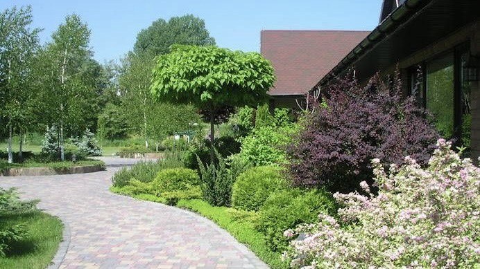 - Дорожки. Спланируйте так чтобы они не были узкими. Если вы хотите сделать дорожку виляющей, то не делайте маленький радиус поворота. Это будет очень неудобно при кошении газона.. Лучше делайте плавные изгибы, даже разделяя разные зоны участка.