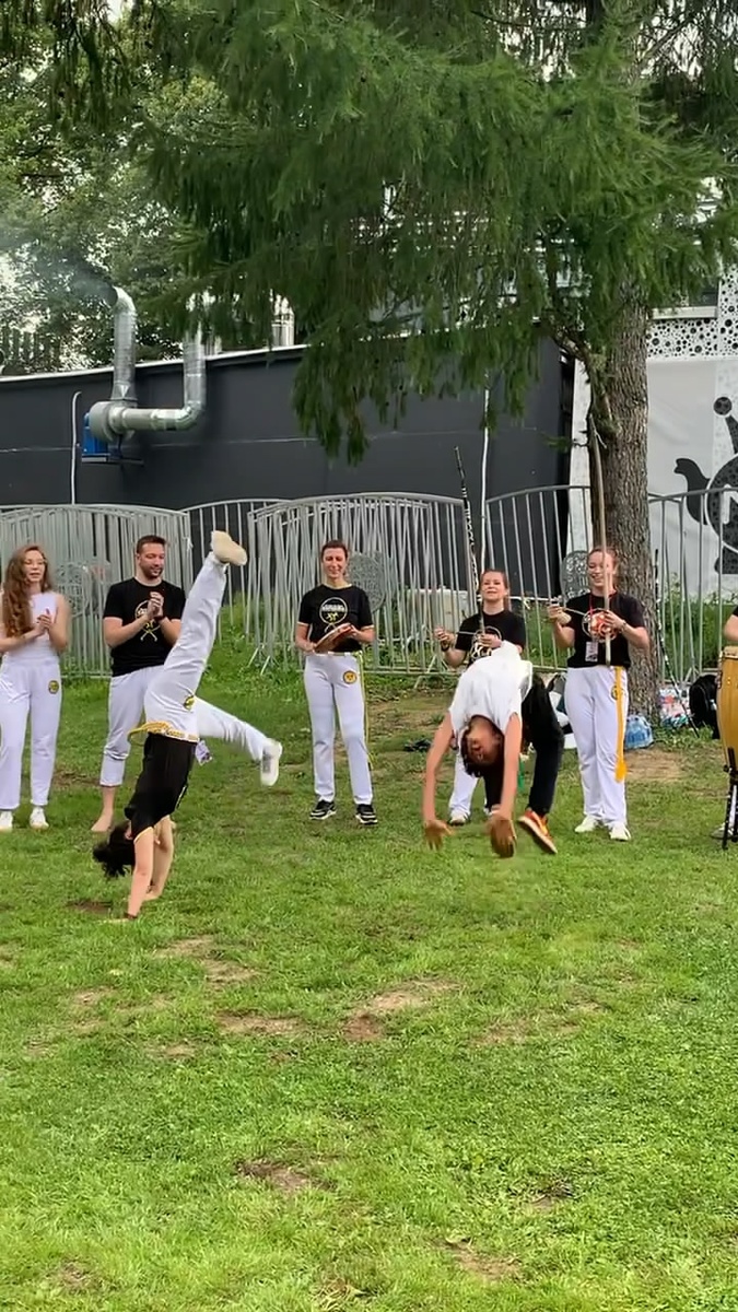 Сгенерировал несколько картинок, посвященных бразильскому искусству капоэйра. Мне оно очень полюбилось, правда, сугубо как зрителю. Зрелище акробатических трюков капоэйристов с вращениями под монотонную музыку на меня лично действуют очень медитативно. Искусство считается боевым, хотя по большинству выступлений напоминает только танцы. Но глядя на видео с мастерами этого спорта, двигающимися со скоростью пропеллера от самолета, понимаешь, что это все-таки и боевое искусство, потому что там можно запросто и ногой с разворота получить, причем очень крепко.