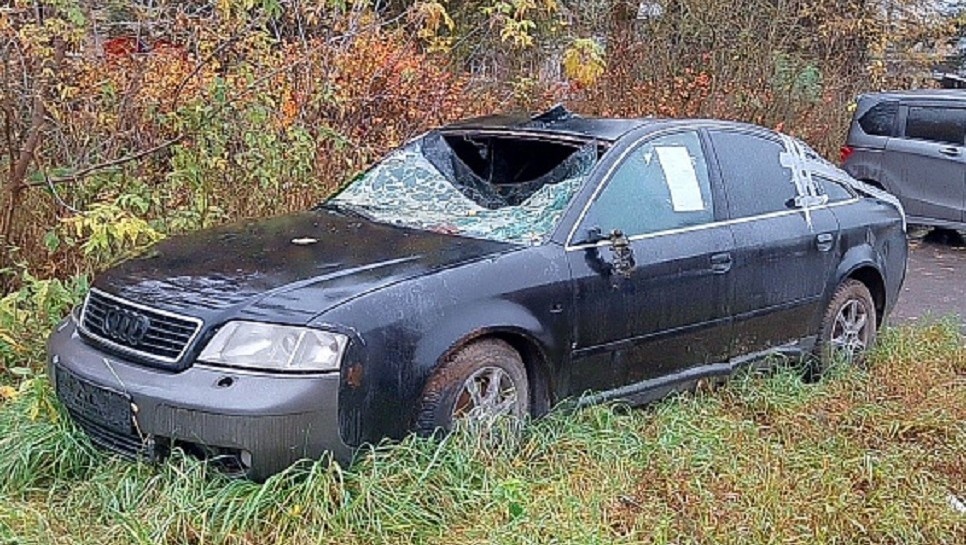 Во дворе дома 46 поселка Химинститута города Твери долгое время стоит разбитый автомобиль Audi. У машины нет госномеров и почти нет лобового стекла. Audi отвечает всем признакам бесхозной, брошенной машины.